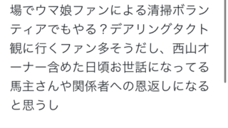 競馬 ウマ娘ファン、池添のツイートに感化され本日中山競馬場内で清掃ボランティア