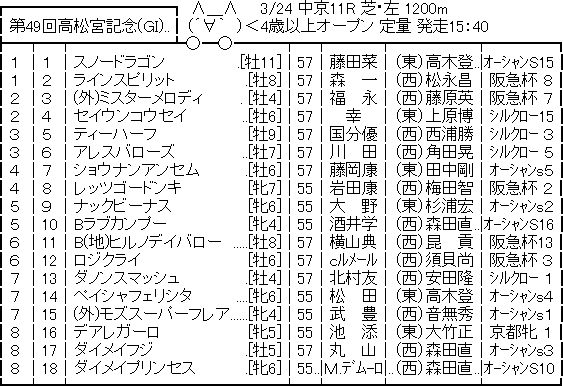 【競馬予想】[3]第49回 高松宮記念(G1) /2019 競馬 Twitter Facebook はてブ Pocket LINE コピー 2019.03.23 13: 名無しさん@実況で競馬板アウト 2019/03/22(金) 09:16:52.06 ID:yCkZXk9M0 枠http://jra.jp/keiba/thisweek/2019/0324_2/syutsuba.html 続きを読む Source: うまなみニュース速報