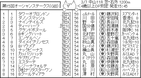 オーシャンSだけなら1枠が良くて8枠が悪いよ
