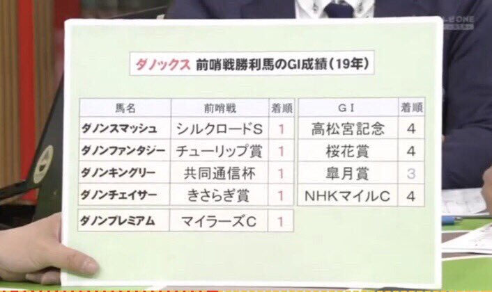 前哨戦のダノンー4年連続2着