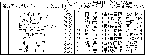 スプリングステークスって結構名馬輩出してる気がするんだが、今年のメンツが…ヴェルトライゼンデがめちゃくちゃ強くなることを祈るレースか。