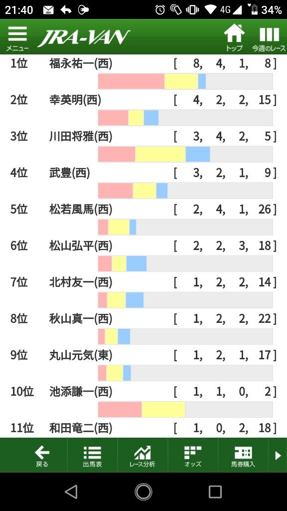 福永は去年中京コース優勝回数では川田と同数だったが、2着の数でリーディングを逃