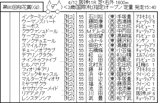 チューリップ賞組とマジックキャッスルとデアリングタクトで良いかな?