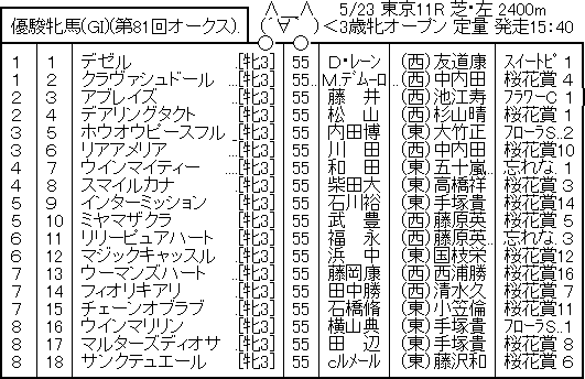 皐月惨敗組がその後トライアル買ったところを見ると今年はそんな年。充実度が段違い
