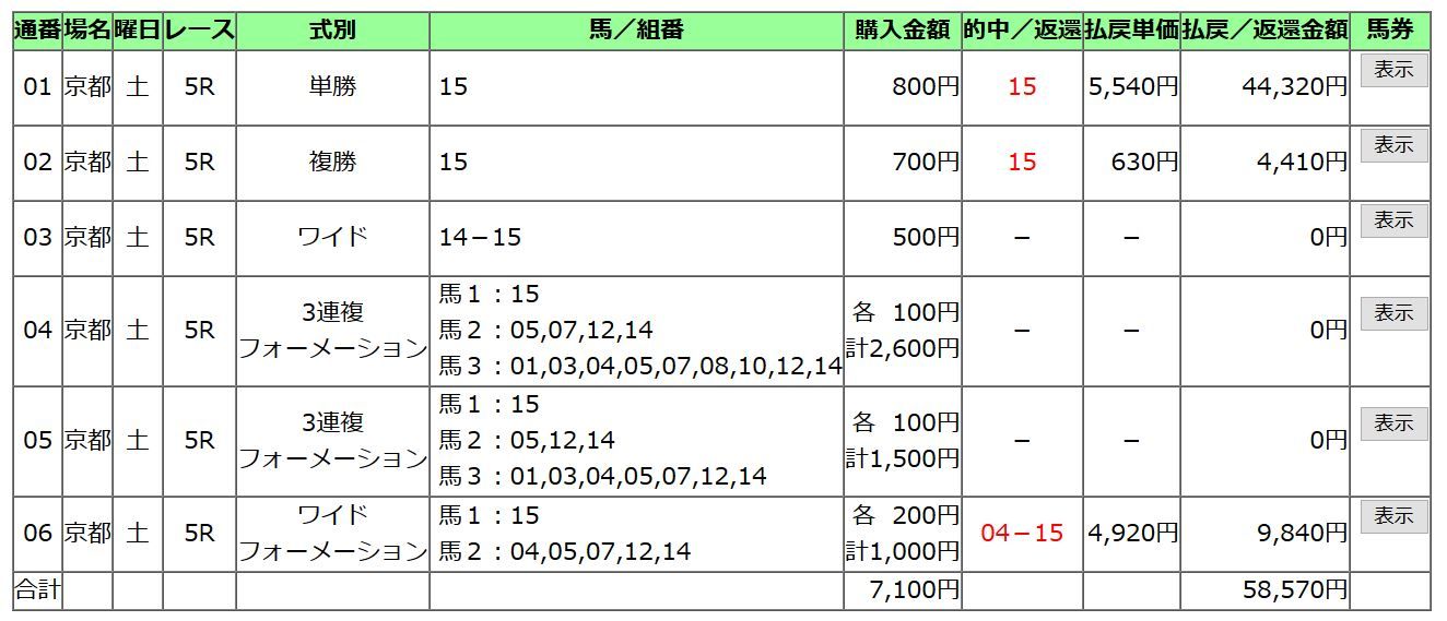 ・土曜競馬は勝負レースが2つ。そのうちひとつ、小倉10Rのかささぎ賞がキレイに決まってくれました! 正直、このレースは運が良かったこともありますが…。