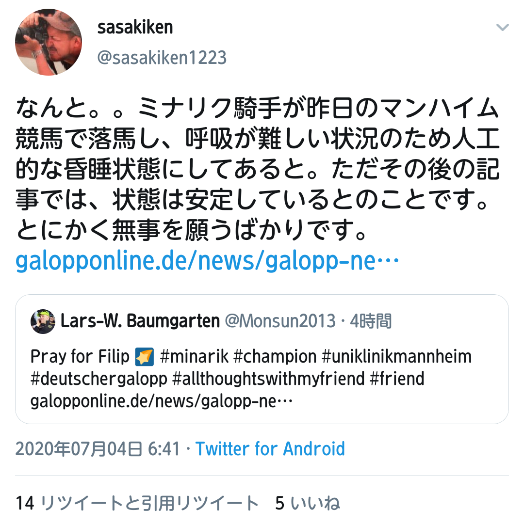 14: 名無しさん@実況で競馬板アウト 2020/07/04(土) 07:34:27.54 ID:72/Kl2zW0