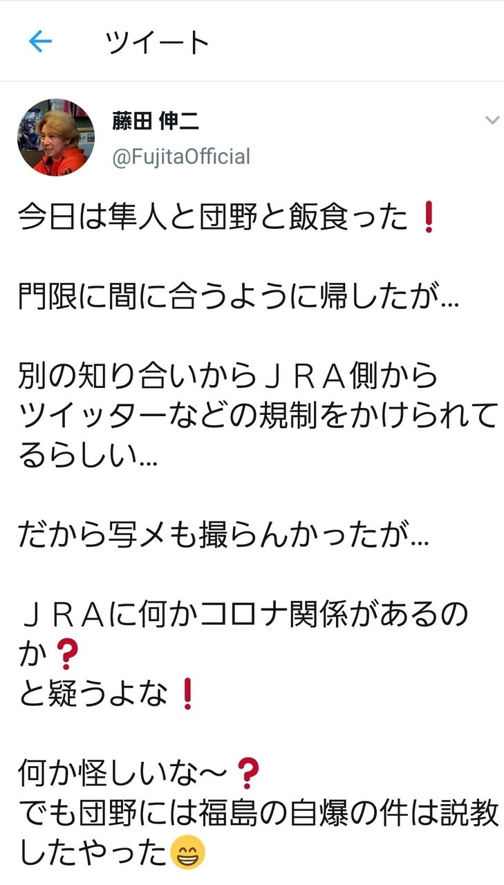 元騎手 藤田伸二さんが新人の団野を説教 競馬 Twitter Facebook はてブ Pocket LINE コピー 2020.08.07 1: 名無しさん@実況で競馬板アウト 2020/08/07(金) 09:10:09.65 ID:ROAVKvWh0 引退しても後輩の面倒見るアニキかっけー! 続きを読む Source: うまなみニュース速報