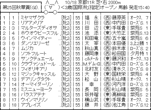 【枠順確定】第25回秋華賞(G1)/デアリングタクトは7枠13番 競馬 Twitter Facebook はてブ Pocket LINE コピー 2020.10.16 115: 名無しさん@実況で競馬板アウト 2020/10/16(金) 09:17:36.58 ID:98eAEhFP0 https://jra.jp/keiba/thisweek/2020/1018_1/syutsuba.html 続きを読む Source: うまなみニュース速報