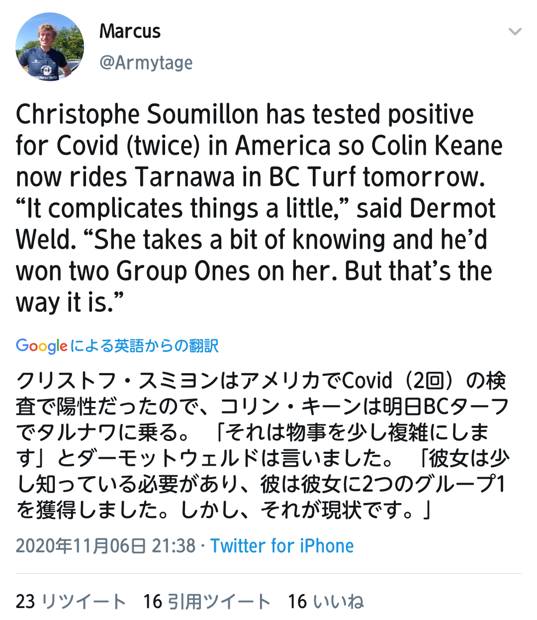 スミヨン、Cデムーロ相次いでコロナ感染 競馬 Twitter Facebook はてブ Pocket LINE コピー 2020.11.07 1: 名無しさん@実況で競馬板アウト 2020/11/06(金) 22:15:05.69 ID:DkMb2mFM0 https://twitter.com/Armytage/status/1324692523755995139 続きを読む Source: うまなみニュース速報