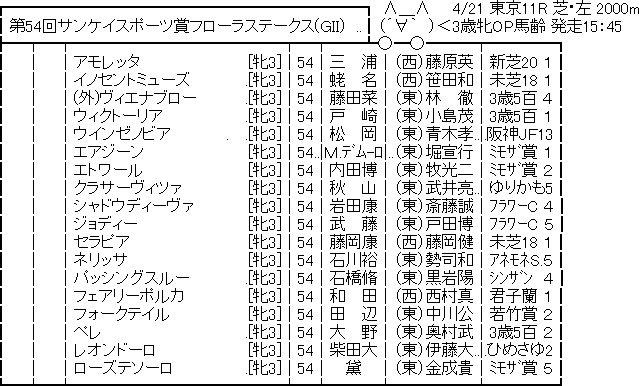 【競馬予想】[1]第54回フローラステークス(G2) /2019 競馬 Twitter Facebook はてブ Pocket LINE コピー 2019.04.18 432: 名無しさん@実況で競馬板アウト 2019/04/18(木) 16:53:30.48 ID:cc35H50h0 続きを読む Source: うまなみニュース速報