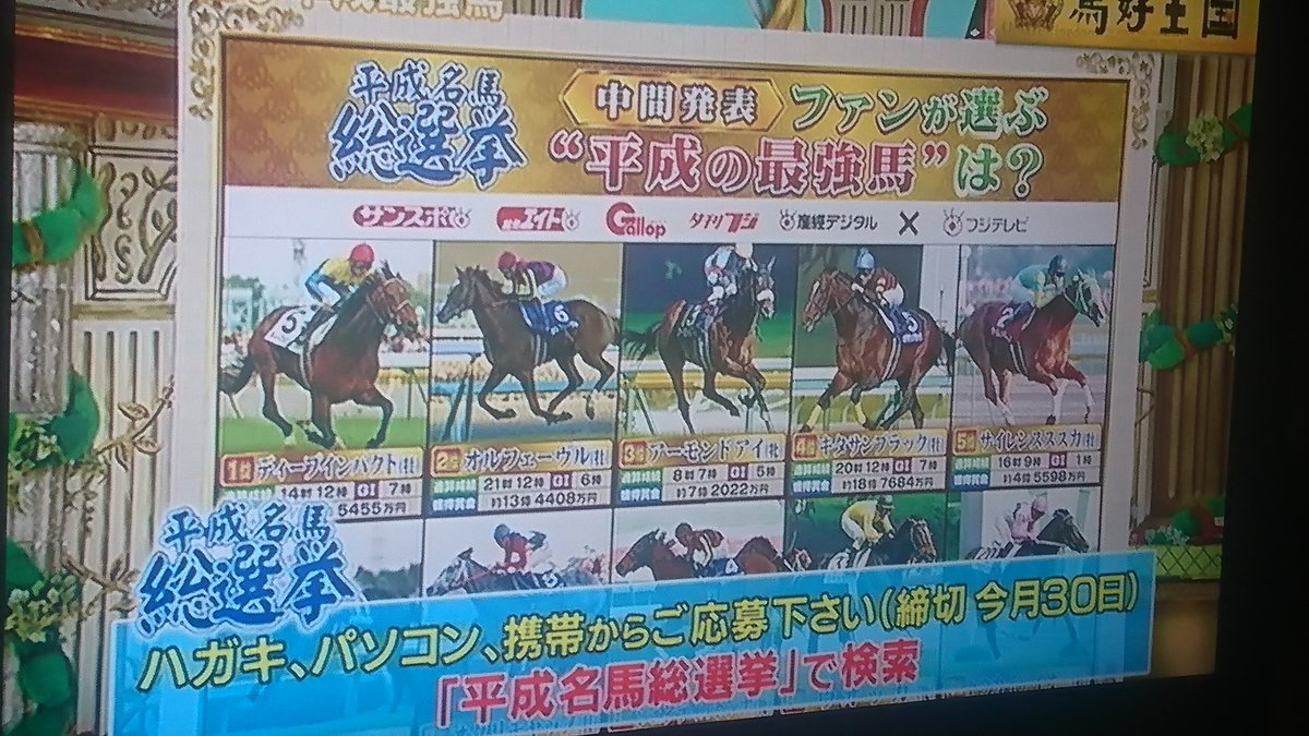こういう名馬最強馬ランキングだと、後10年はディープが1位だろうな