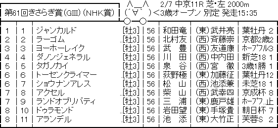 【競馬予想】[2]第61回きさらぎ賞(G3)/2021 競馬 Twitter Facebook はてブ Pocket LINE コピー 2021.02.06 594: 名無しさん@実況で競馬板アウト 2021/02/05(金) 15:06:16.31 ID:i2Csvz9d0 続きを読む Source: うまなみニュース速報