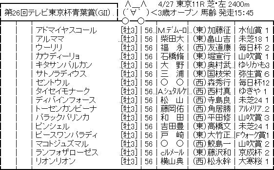 345: 名無しさん@実況で競馬板アウト 2019/04/24(水) 11:13:10.42 ID:zyYko/jI0