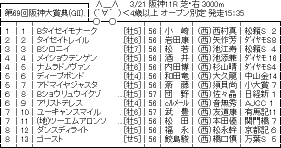 【競馬予想】[2]第69回阪神大賞典(G2) /2021 競馬 Twitter Facebook はてブ Pocket LINE コピー 2021.03.20 527: 名無しさん@実況で競馬板アウト 2021/03/19(金) 10:11:49.49 ID:zaaF+al90 続きを読む Source: うまなみニュース速報