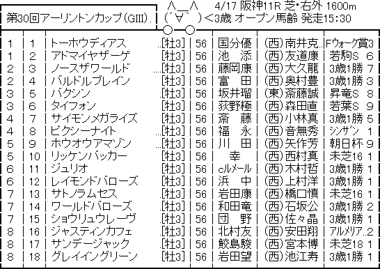 【競馬予想】第30回 アーリントンカップ(G3)/ 2021 競馬 Twitter Facebook はてブ Pocket LINE コピー 2021.04.16 161: 名無しさん@実況で競馬板アウト 2021/04/16(金) 10:24:41.79 ID:0hlaHuL10 続きを読む Source: うまなみニュース速報