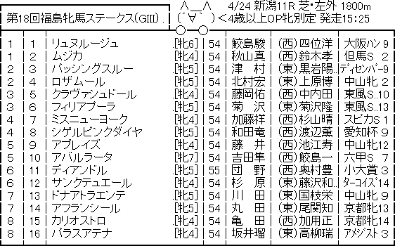 【競馬予想】第18回 福島牝馬ステークス(G3) /2021 競馬 Twitter Facebook はてブ Pocket LINE コピー 2021.04.23 203: 名無しさん@実況で競馬板アウト 2021/04/23(金) 10:20:54.61 ID:KN9MbAD00 続きを読む Source: うまなみニュース速報