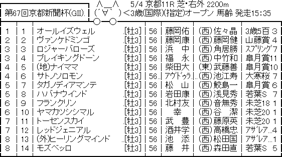引用元:https://lavender.5ch.net/test/read.cgi/keiba/1556525220/