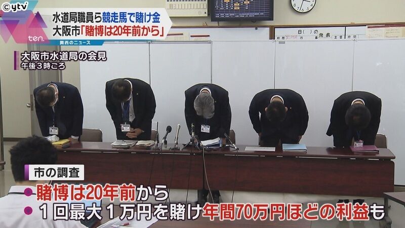 8人は47~58歳の水道局職員5人と、知人の45~58歳の会社員3人。市によると、職員3人は約20年間にわたり賭博を続けていた。送検容疑は2019年6月~20年12月、仮想オーナーとなった馬がレースで獲得した賞金を競う「ペーパーオーナーゲーム」を利用し、賭博を繰り返したとされる。府警は認否を明らかにしていない。