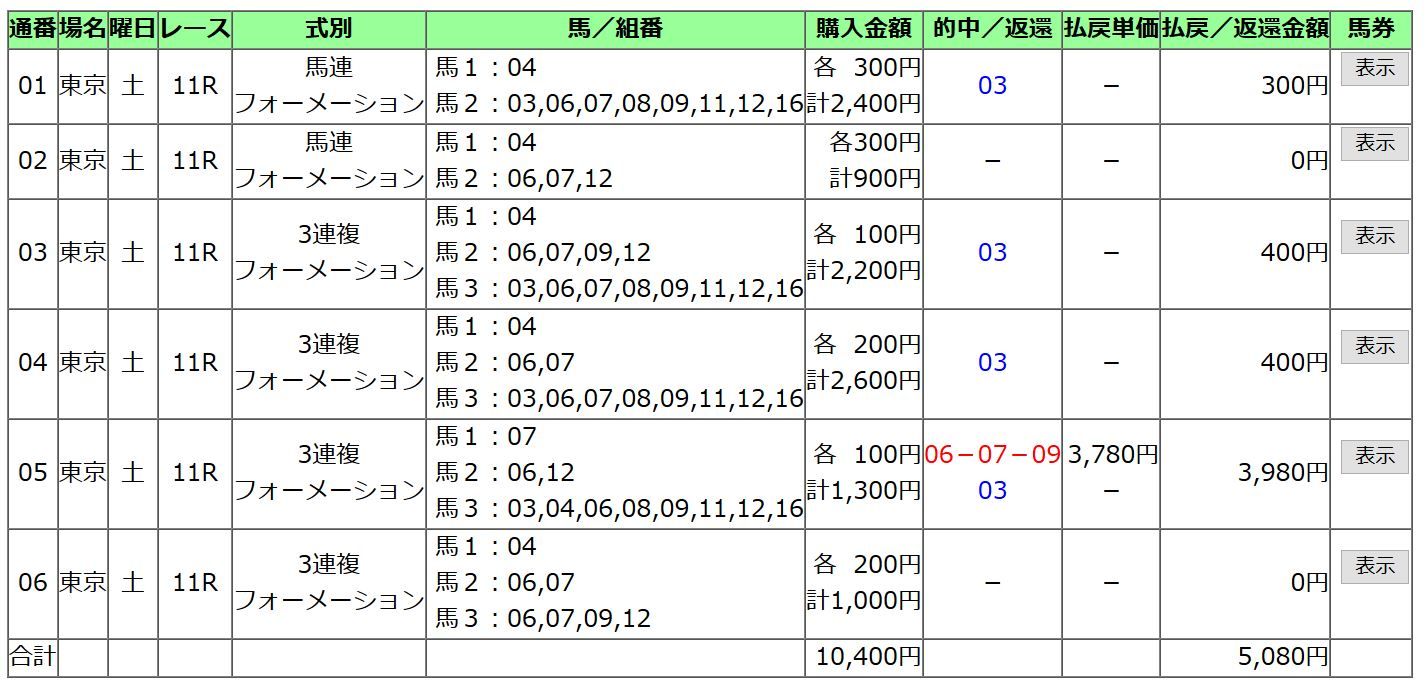 長く競馬をやって行けば行くほどハナ差の勝ちも負けも結局は平均値に収束していくわけですから、結果は結果としてすべて受けとめるという余裕を持って臨みたいものです。