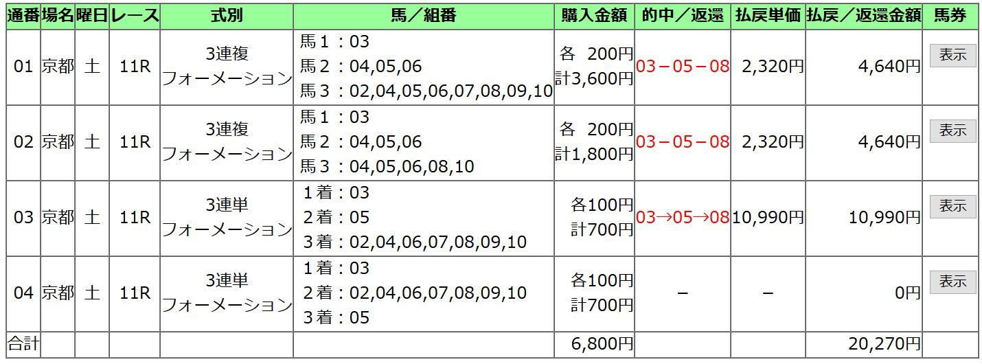 こっちも堅かったけど、的中としてはキレイでした。
