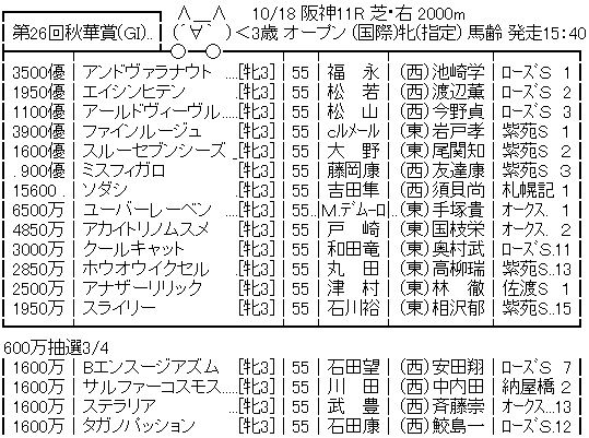 【競馬予想】[2]第26回 秋華賞(G1) / 2021 競馬 Twitter Facebook はてブ Pocket LINE コピー 2021.10.13 1: 名無しさん@実況で競馬板アウト 2021/10/10(日) 16:25:15.31 ID:8mGgb02H0 続きを読む Source: うまなみニュース速報