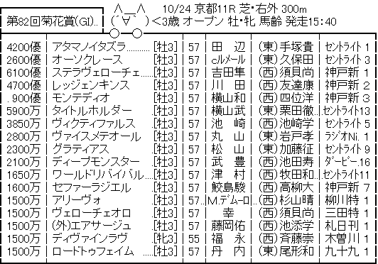 【競馬予想】[1]第82回菊花賞(G1) / 2021 競馬 Twitter Facebook はてブ Pocket LINE コピー 2021.10.19 1: 名無しさん@実況で競馬板アウト 2021/10/17(日) 17:54:19.67 ID:4IyDA2IZ0 続きを読む Source: うまなみニュース速報
