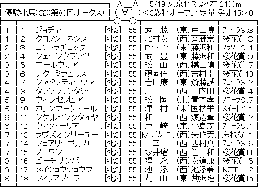 394: 名無しさん@実況で競馬板アウト 2019/05/18(土) 21:10:36.20 ID:Zqxe1BDf0