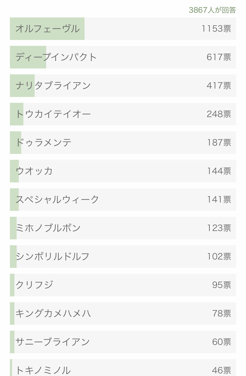 はじめ見た時テイオーが同じ支持率の1位やったのに。いつのまに?