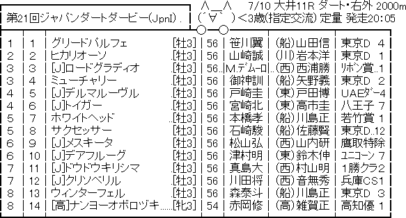 東京ダービー組もヒガシ、ラッキープリンス、クリスタルシルバーとか通用してるじゃん。