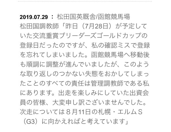 登録忘れならまだしも1200の馬間違えて2600に登録したって話も前にあったな