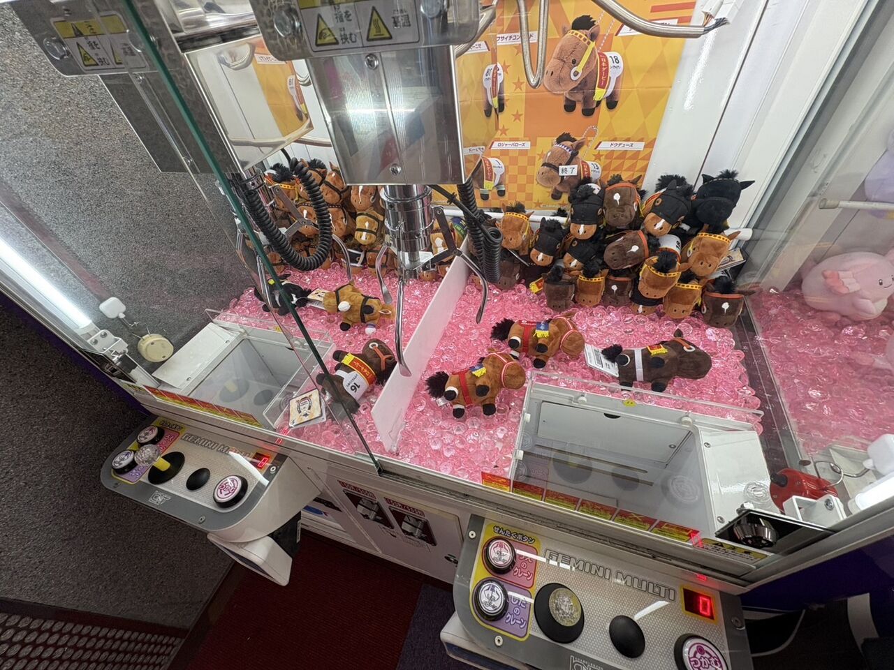 ちなみに取るのは馬のぬいぐるみだけ。大きい方が取りやすいんですが、大きいと置き場所も大変だから、そこだけは解決しないと。