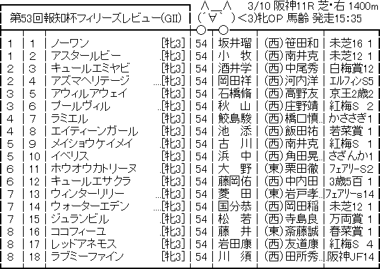 【競馬予想】第53回 報知杯フィリーズレビュー(G2) /2019 競馬 Twitter Facebook はてブ Pocket LINE コピー 2019.03.09 260: 名無しさん@実況で競馬板アウト 2019/03/08(金) 10:12:52.90 ID:niY5Vsu40 続きを読む Source: うまなみニュース速報