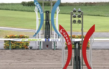 中京ダート1800m ← スタートが坂の途中。圧倒的先行有利