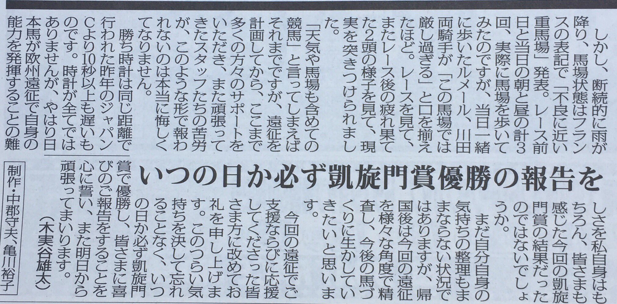 凱旋門賞の前に日本馬は馬場が悪い時ほど好走するというデータを得意げに出してた奴らがいたな