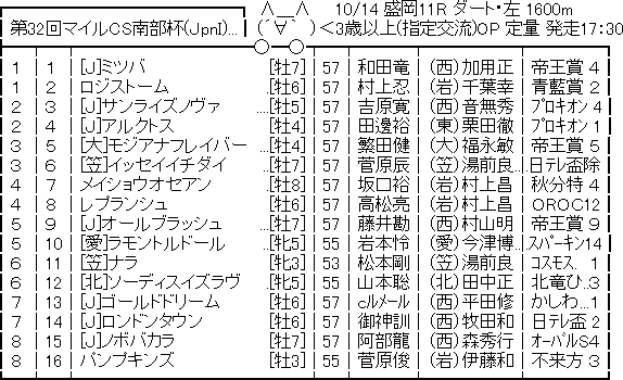 南部杯って本来こんなメンバー何だろうけど去年が凄すぎたせいかショボく感じるわ
