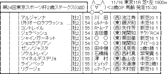 226: 名無しさん@実況で競馬板アウト 2019/11/13(水) 10:57:54.27 ID:aBx/o5f10