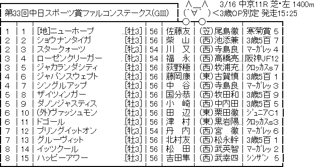 【競馬予想】第33回 ファルコンステークス(G3) /2019 競馬 Twitter Facebook はてブ Pocket LINE コピー 2019.03.16 167: 名無しさん@実況で競馬板アウト 2019/03/15(金) 10:10:23.84 ID:70PqrGOU0 続きを読む Source: うまなみニュース速報