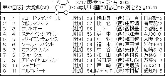 【競馬予想】[2]第67回 阪神大賞典(G2) /2019 競馬 Twitter Facebook はてブ Pocket LINE コピー 2019.03.16 685: 名無しさん@実況で競馬板アウト 2019/03/15(金) 10:14:27.00 ID:70PqrGOU0 続きを読む Source: うまなみニュース速報