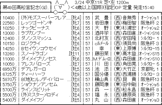 【競馬予想】[1]第49回 高松宮記念(G1) /2019 競馬 Twitter Facebook はてブ Pocket LINE コピー 2019.03.19 1: 名無しさん@実況で競馬板アウト 2019/03/19(火) 14:42:29.52 ID:2E7z4LHl0 続きを読む Source: うまなみニュース速報