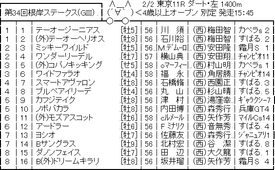 根岸S ◎コパノキッキング 1人気確実←NEW